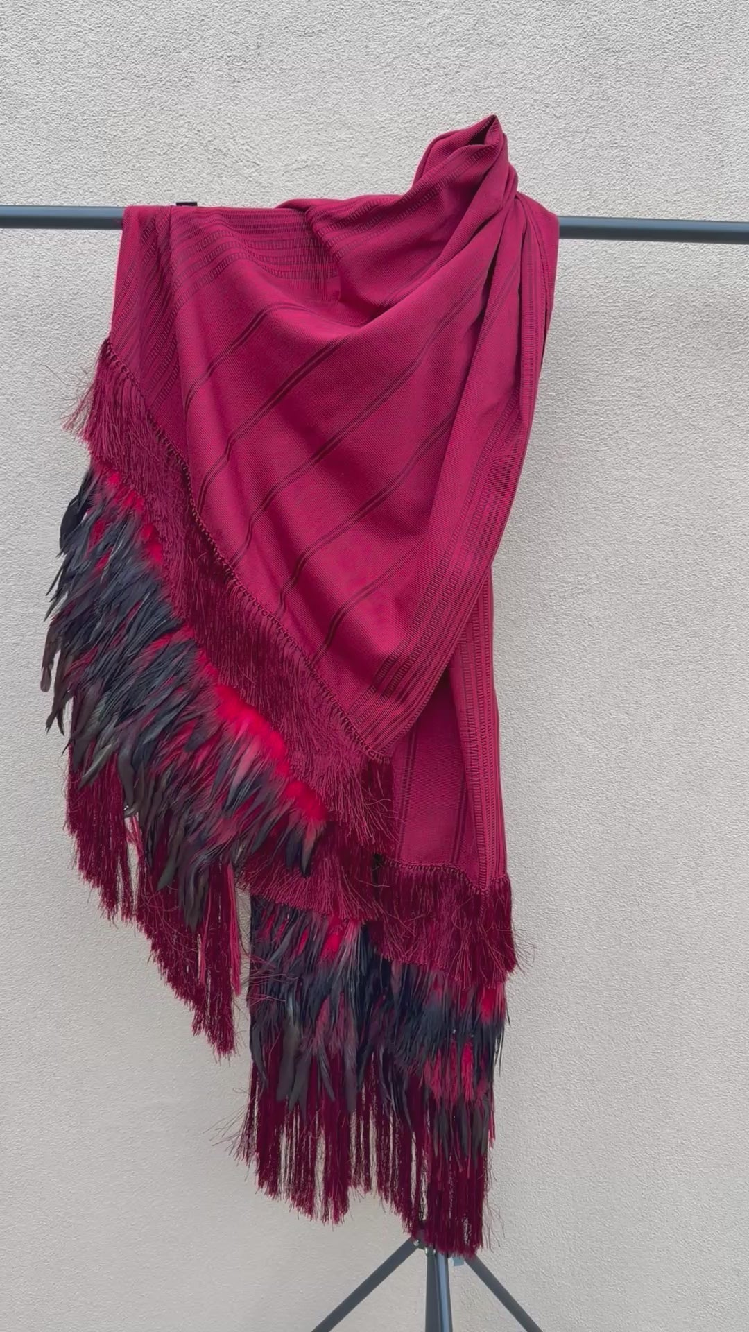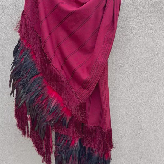 Purepecha rebozo with fringe and feathers