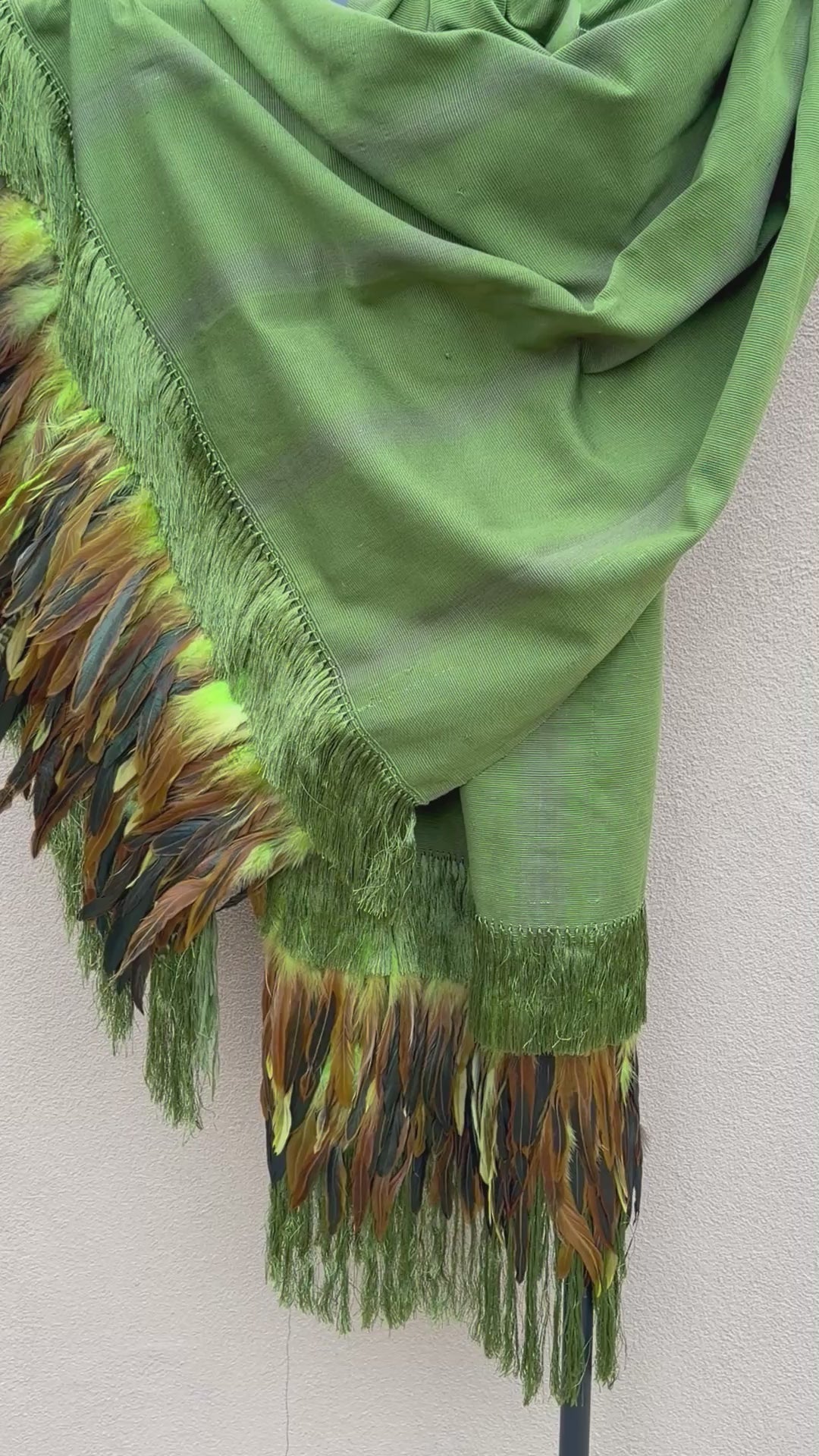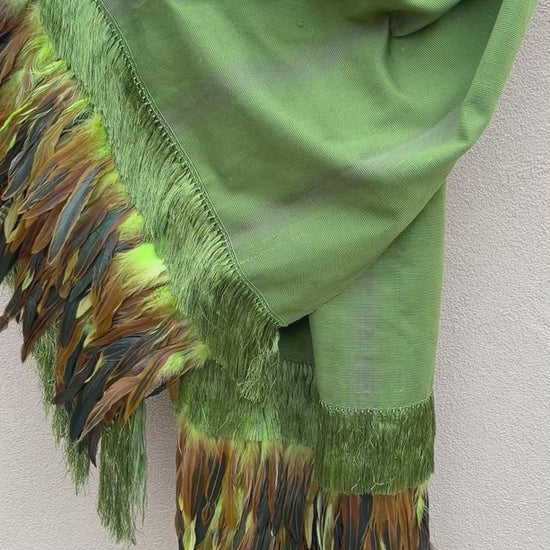 Purepecha rebozo with fringe and feathers