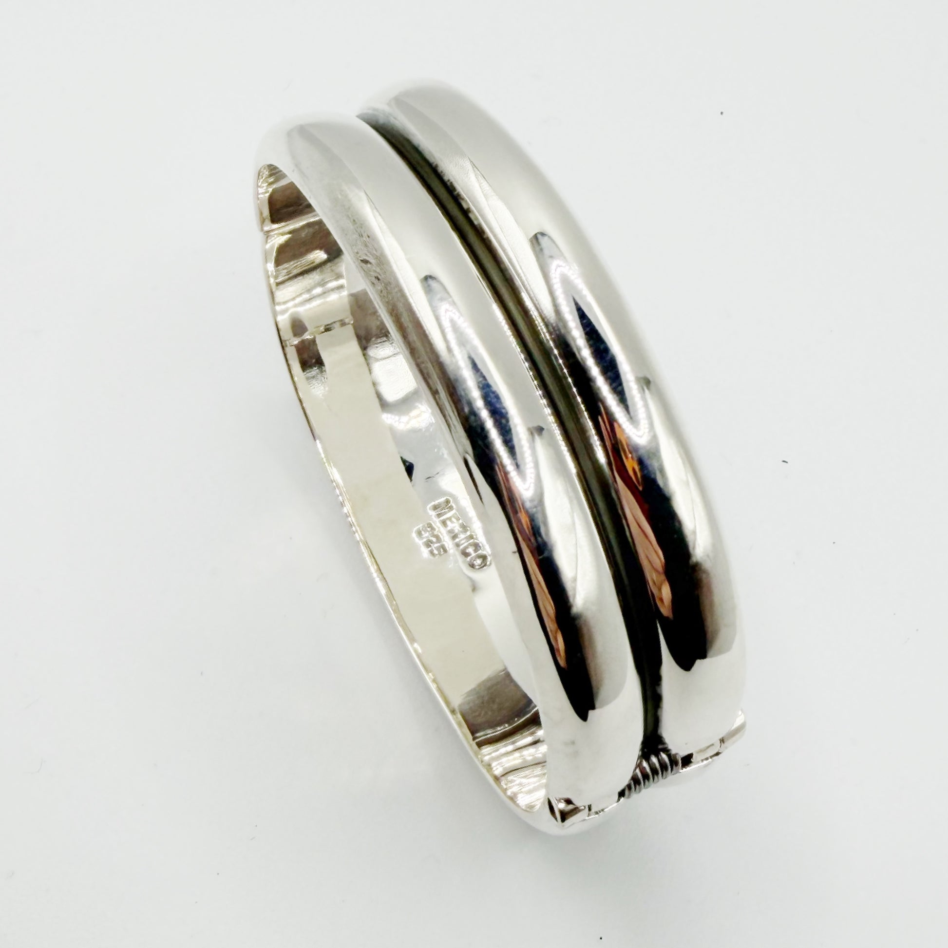 Silver stripe Taxco clamper bracelet, modern design like vintage Taxco bracelet