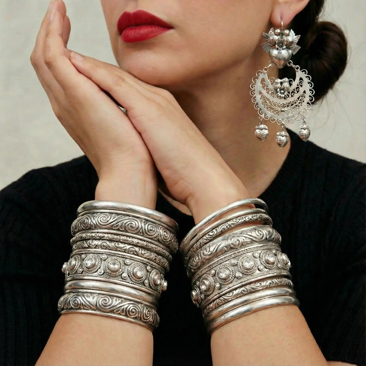 Our Mazahua jewelry is meticulously handcrafted by Mazahua artisans, preserving centuries of living tradition. No two designs are alike; subtle variations reflect authenticity and intention. Rich in ancestral symbolism yet refined for modern elegance, every creation is a timeless expression of culture, artistry, and legacy.