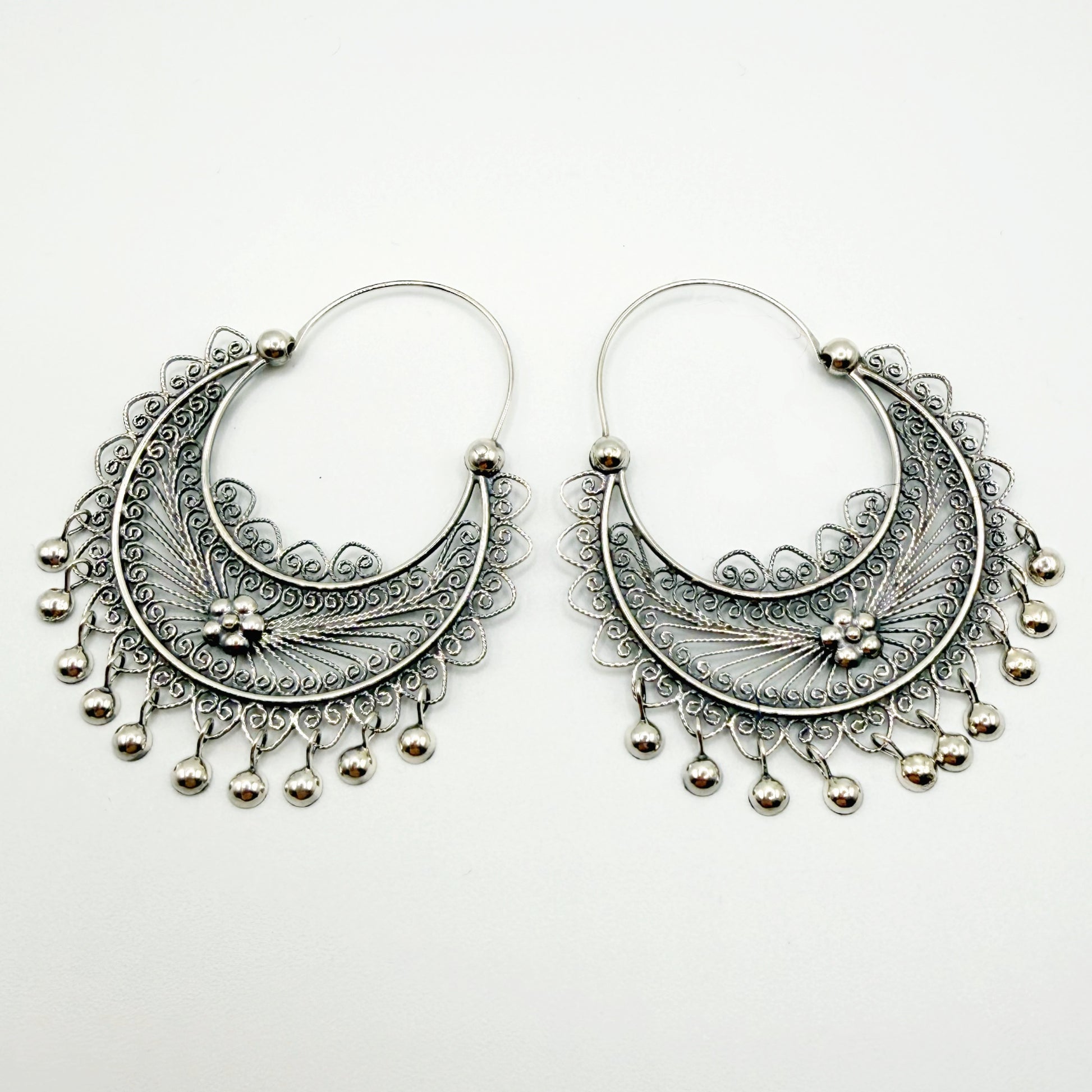 Mexican Mazahua silver hoop earrings-absolutely stunning